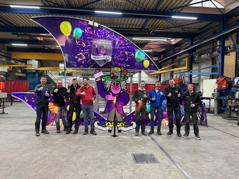 Brian Grefte, leider van de wagenbouwgroep, kijkt met trots terug op het bouwproces: “We hebben echt een superleuke club met bouwers, waarbij het elke bouw wel weer een feestje is! Op 12 oktober zijn we begonnen en inmiddels zitten we op 23 bouwdagen en -avonden. Alles bij elkaar denk ik dat we zo’n 400 uur werk hebben zitten in het ontwerp, de tekeningen en de bouw.”