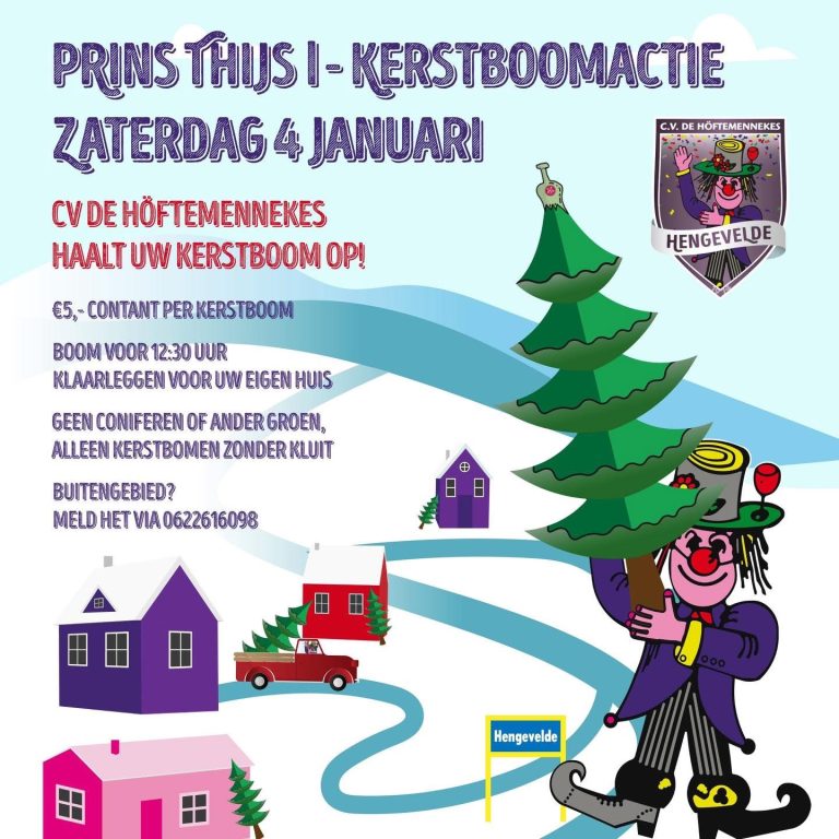 Op zaterdag 4 januari zal de carnavalsvereniging rondgaan in Hengevelde om uw kerstboom op te halen.