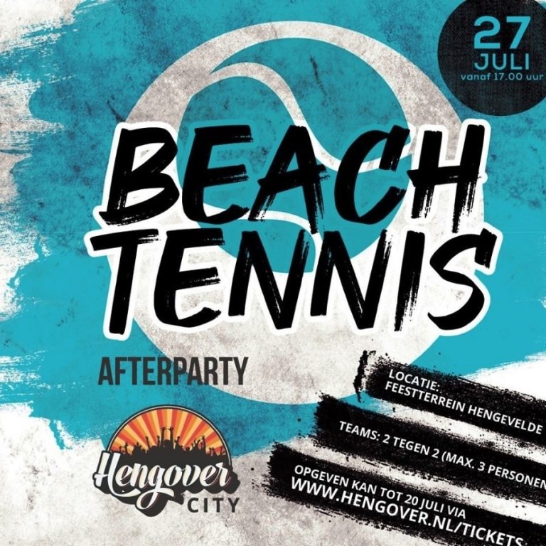 Over een aantal weken is het alweer zo ver, de 5e editie van het Beachtennis toernooi. Zoals jullie misschien wel weten gaat Beachtennis een vette samenwerking aan met Hengover City 2019. Al het geweldige dat je gewend bent van Beachtennis met een legendarische afterparty in zomerse sferen. Vanaf 17.00u brandt de strijd los op het eigen stukje Wimbledon-Beach. De line-up voor de afterparty is gevuld met o.a. Puinhoop Kollektiv, FEESTNATION, BendeVanEllende, en nog veel meer.