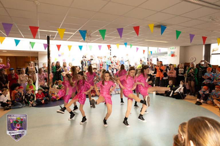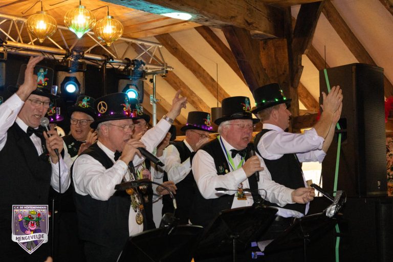 Vervolgens kwamen de mini en maxi-dansmariekes met flitsende dansjes op ritmische moderne muziek. De prinsengarde vormde een koor dat uit volle borst vele bekende Hollandse hits zong die door alle feestgangers van harte werden meegezongen.
