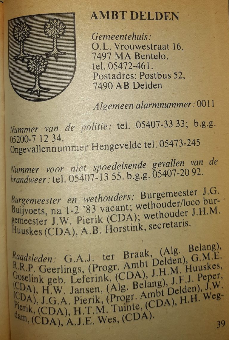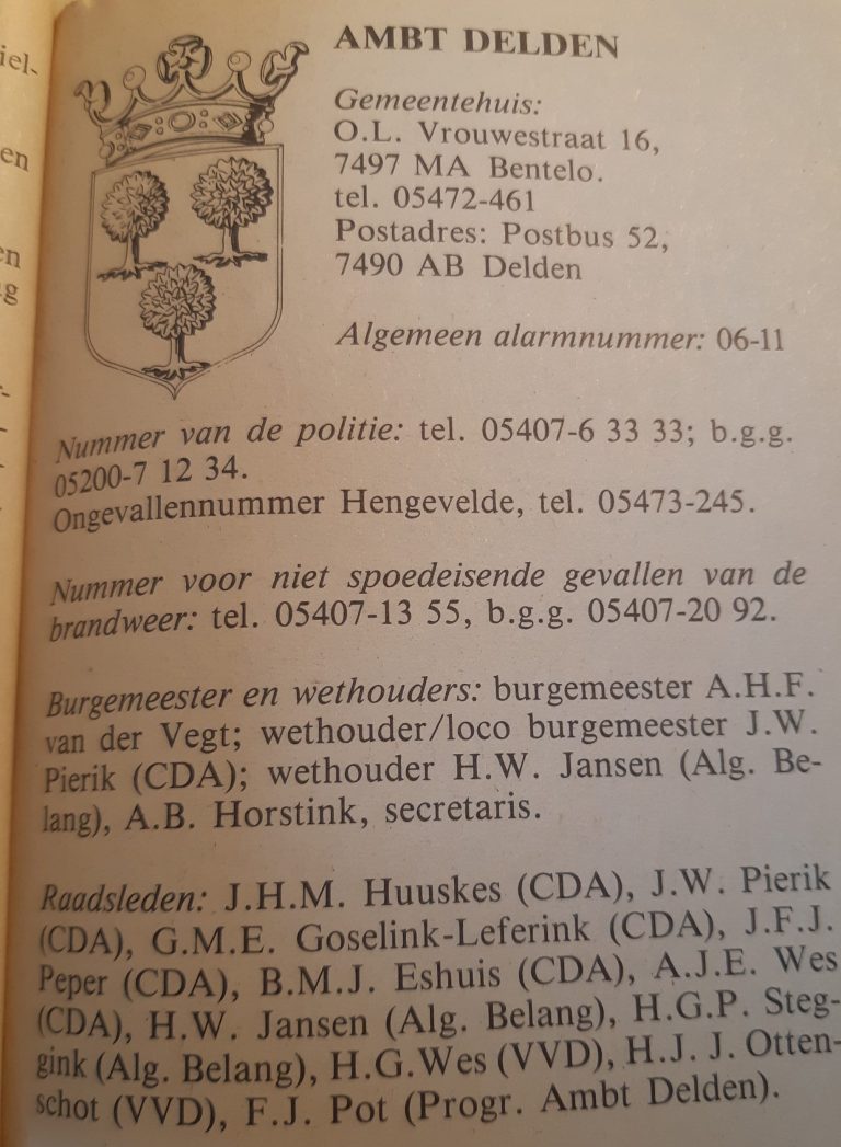 In 1982 kwamen vanuit Hengevelde nieuwe geluiden de gemeenteraad van Ambt-Delden binnen. Rob Geerlings legde voor Progressief Ambt-Delden de eed af en ook de in Hengevelde geboren en in Wiene woonachtige Trudy Goselink-Leferink (CDA) maakte voor het eerst haar opwachting in de raad en was daarmee na Tinie Wassenberg-Op den Akker de tweede vrouw in de raad van Ambt. Hennie Tuinte, Harrie Wegdam waren er nog namens het CDA. In ’86 kwamen daar Frans Pot (Progressief Ambt-Delden/PAD90) en Harry Ottenschot (VVD) bij. Ben Eshuis (CDA) begon in ’86 ook aan zijn politieke carrière. We bespreken in deze serie de periode dat Ambt-Delden een eigen burgemeester had. Deel 2 gaat over de jaren tachtig met Geerlings, Ottenschot en Eshuis als gesprekspartners.
