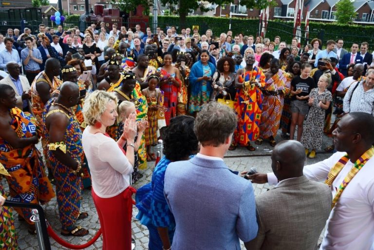 Zo’n tachtig Ghanezen kwamen naar Haaksbergen om de Brian Wegdam in het koningschap te verheffen. Wegdam doet veel zaken in Afrika en richtte een liefdadigheidsinstelling op. Nu is hij een chief, een ‘kleine koning’ met vooral ceremoniële macht.
