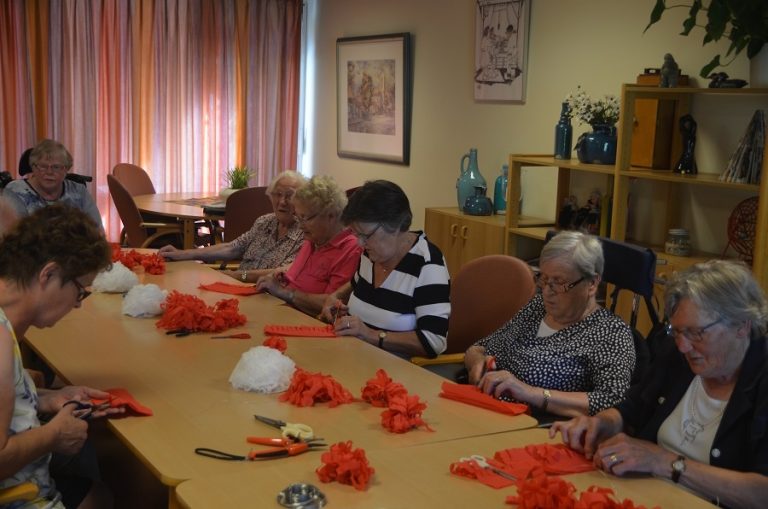 Op 1 september is het 25 jaar geleden dat in Hengevelde het eerste project dagopvang voor ouderen werd opgericht. Op de foto zijn de dames volgens de Twentse traditie al druk bezig met de voorbereiding: het maken van de roosjes voor in de boog. De receptie is aanstaande donderdag van 15.00 uur tot 17.00 uur aan de Pellehof 19, waarvoor alle lezers van Wegdamnieuws bij deze van harte zijn uitgenodigd. De voorziening kent een mooie geschiedenis. Vanaf 1991 werden twee keer per week, op dinsdag en op donderdag, de deuren van de pastorie van de Petrus en Paulusparochie geopend. Hengevelde was destijds nog niet bekend met het fenomeen dagvoorziening en ouderen woonden vaak bij hun kinderen in huis. Velen keken daarom in het begin de kat nog uit de boom. Na een eerste bezoek was men echter al snel om. Onder het genot van een bakje koffie en het zien van goede bekenden, die inmiddels ook de weg naar de pastorie hadden gevonden werden ouderen al snel enthousiast. Niet in de laatste plaats kwam dit door betrokken en gemotiveerde vrijwilligers, die van meet af aan een thuisgevoel creëerden, waarin niets moest en iedereen werd gerespecteerd.