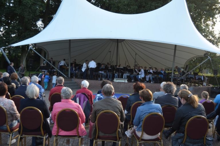 Muziek werd gespeeld door het B-orkest de drumband en het A-orkest ondersteund door Thijs Rupert op piano en Frank Slijkhuis met Lennartd Kiezenbrink op gitaar. De drankjes werden verzorgd door de Gebrande Waateren. Kortom alle ingrediënten waren aanwezig voor een gezellige, muzikale en zelfs zomeravond.