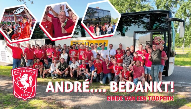 Zondag 4 juni speelde FC Twente de halve finale van de play-offs tegen SC Heereveen. Vanzelfsprekend wonnen de tukkers. Echter bleef die dag voor menig FC Twente fan uit Hengevelde vooral de speech van buschauffeur Andre Assink bij. André kondigede namelijk zelf aan dat hij na dit seizoen stopt als onze vaste chauffeur naar de thuiswedstrijden. Vanaf 2011 was André de chauffeur van de bus die elke thuiswedstrijd vertrok bij café Assink en sinds 2017 vanaf café ’t Kooltje. Via de bushalte in Bentelo en een snelle tussenstop in Beckum (waar Stefan de Wit opstapte) bracht hij gemiddeld 20 keer per jaar een bus vol fans naar de Grolsch Veste. Vanaf 2011 tot maart 2020 (vlak voor corona) gebeurde dit met de alom bekende zwarte dubbeldekker van baas B. De jaren daarna met een touringcar van taxi ter Doest.