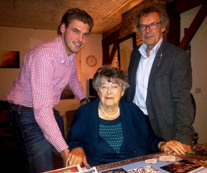 Op de foto uit oktober 2013 zit ze tussen zoon George (rechts) en kleinzoon Joost.