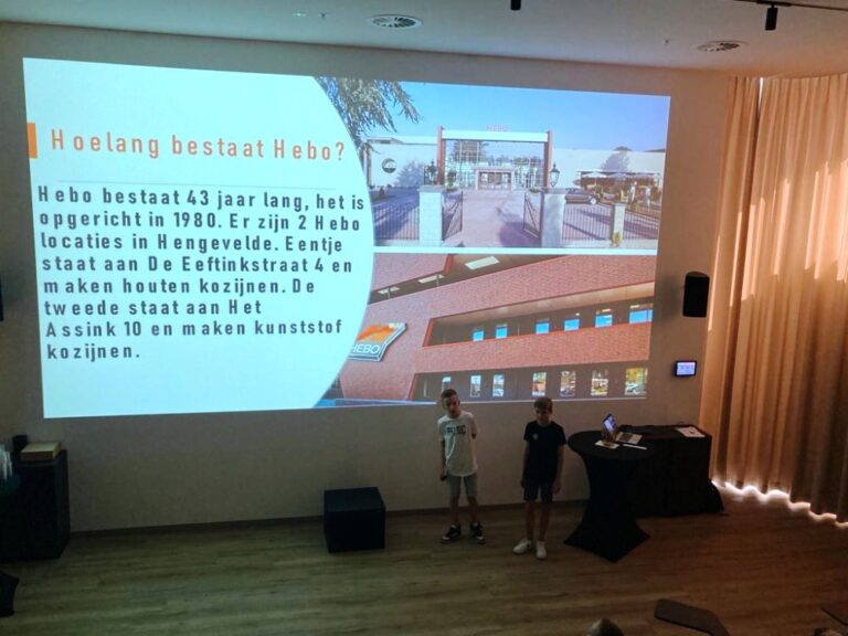Wij kijken dan ook terug op een geweldige samenwerking en gaan dit project volgend schooljaar verder uitvoeren. We hopen dan ook bij de andere bedrijven een kijkje te kunnen nemen. Zie verder de foto’s van de presentaties van de leerlingen.