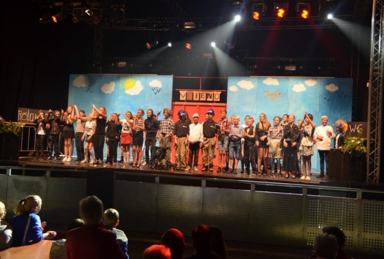 Maar liefst 39 kinderen; perfect gekapt, geschminkt en in kostuum. Een prachtig decor gemaakt met medewerking van diverse ouders, de zomerfeesttent rijkelijk gevuld met zo’n 350 ouders, grootouders, familieleden en bekenden. “Er is geen basisschool in Nederland die werkt met zo’n scala aan licht en geluid en aankleding zoals wij vanavond, dank aan So Nice” waren de woorden van de directeur van de Petrusschool Dineke Hek. Het was toch weer een hele opgave, 39 kinderen en toch allen een rol van betekenis geven, hetgeen men ook dit jaar weer met glans in is geslaagd. De titel van de 90 minuten durende voorstelling was dit jaar ‘Torenhoog'. Paniek in de pret flat door het uitvallen van de lift, wifi en ieder contact met de buitenwereld. Wat volgde was een botsing tussen oud en jong in deze benarde situatie voor…voor sommigen.