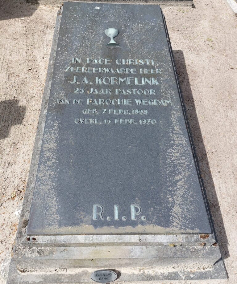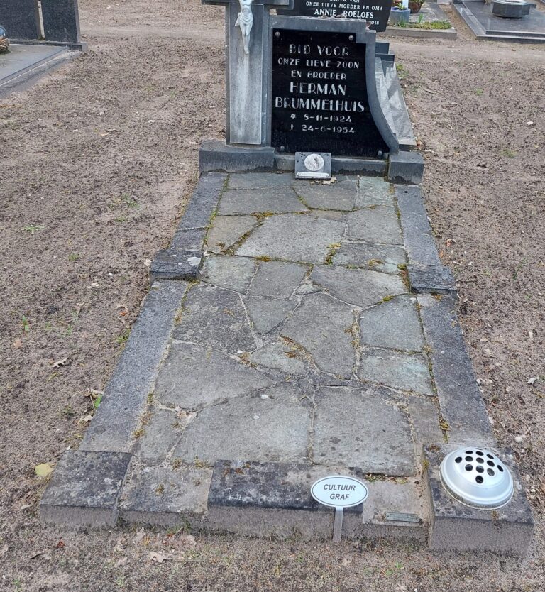 Sinds een tijdje is dan ook bij het graf van Bernard en Anna Eijsink-Breteler een klein bordje geplaatst met het opschrift Cultuurgraf. Ook bij mijn grootouders Gerard en Mina Eijsink-Scholten is zo’n bordje geplaatst. Ernaast staat zo’n zelfde bordje bij het graf van oorlogsslachtoffer Jan ten Heggeler. Verderop zie ik dat ook het graf van een zekere Herman Brummelhuis en de hogere graven van de pastoors Kormelink en Van den Brink zijn aangemerkt als cultuurgraf. Zo zijn er nog een paar.