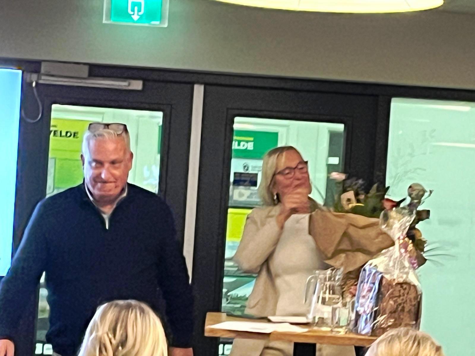 Na een kort welkomstwoordje van Jacqueline, werd Veronique in het zonnetje gezet. In haar bestuursperiode wist ze met een positieve, verbindende aanpak jong en oud, competitie en recreatie, trainers en ouders dichter bij elkaar te brengen. Met name haar inzet om ouders te betrekken en jeugd en senioren met elkaar te verbinden, heeft de clubcultuur goed gedaan.
