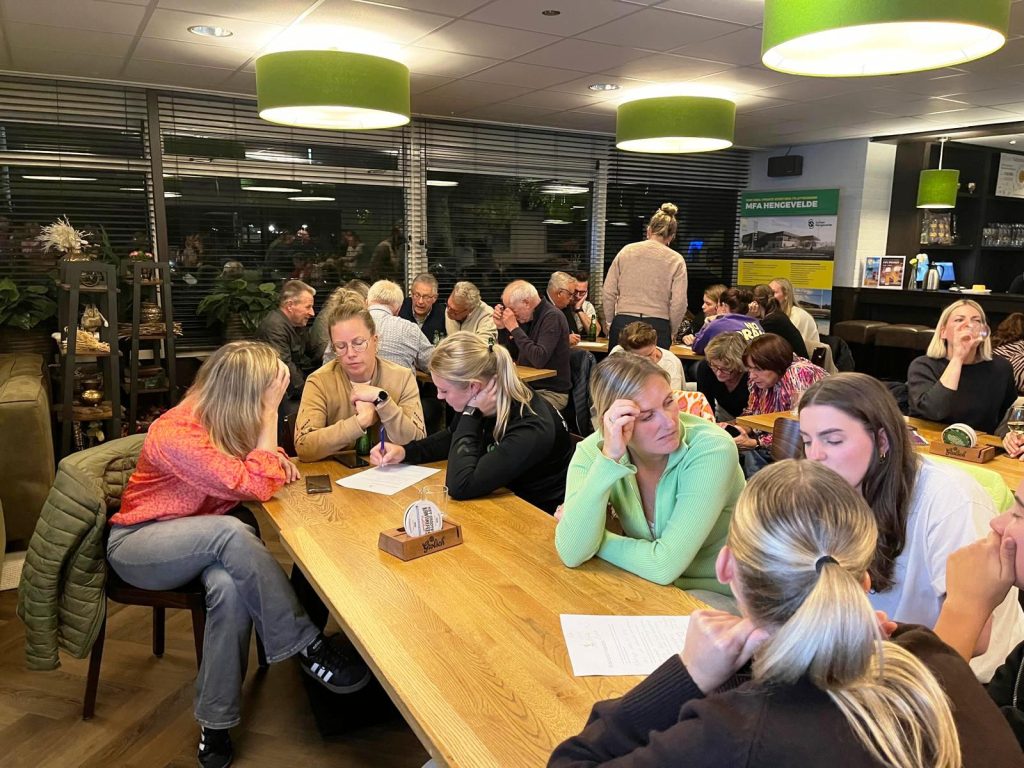 De avond werd afgesloten met een bekende brainstormsessie. In groepen werd er nagedacht over een aantal stellingen die het bestuur had voorbereid. De uitkomsten hiervan worden binnenkort gedeeld via de nieuwsbrief.