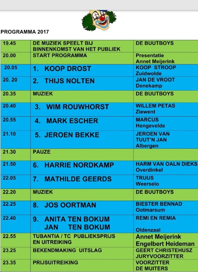 “Fantastisch! Mijn buut deed het beter dan verwacht. Helaas had ik nog grappen over nadat mijn tijd verstreken was dus iets beter oefenen de volgende keer haha, nu niet gedaan. Ik zat niet bij de eerste drie maar ik deed dan ook mee onder de olympische gedachte. Wat wel een beetje wrang was is dat de gene die derde is geworden letterlijk stukken van Helligen Hendrik over had genomen , die ik ook goed ken haha. Dus beetje goedkoop. Verder was het genieten en leerzaam. Met veel top acts die weer van pas komen in onze eigen revue!”