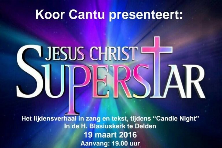 Het Hengevelds/Deldense koor Cantu, met onder andereJacqueline Nibbelink, Francis Peters, Annette Wolterinck en Johnny Groot Kormelinkin de gelederen, zal op 19 maart de beste en mooiste liederen uit de rockmusical ‘Jesus Christ Superstar’ ten gehore brengen in de Heilige Blasiuskerk aan de Langestraat te Delden. De uitvoering wordt gehouden in het kader van ‘24 uur voor de Heer’. Tijdens deze ‘Candle Night’, in de aanloop naar Pasen, wordt er rond de tekst en muziek aandacht gevraagd voor de oproep van paus Franciscus om wereldwijd een etmaal te bidden voor vrede.Koor Cantu is in 2010 ontstaan, na een fusie van het Deldense Jongerenkoor en het Hengeveldse jongvolwassenkoor El Qahal.