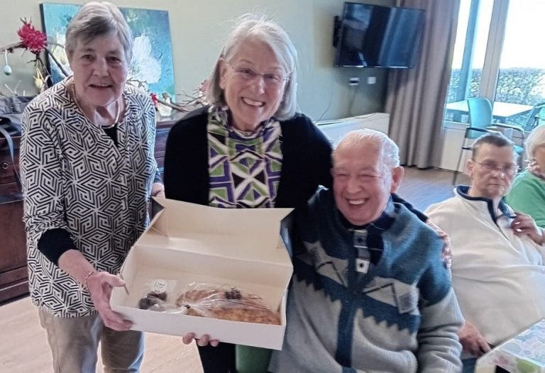 Tijdens het koffiemoment werden de aanwezigen verrast met een feestelijke doos gevuld met een heerlijke paasstol en chocolade-eitjes. De lekkernijen werden met stralende gezichten in ontvangst genomen. Zo ging iedereen met iets lekkers voor de Paasdagen huiswaarts.