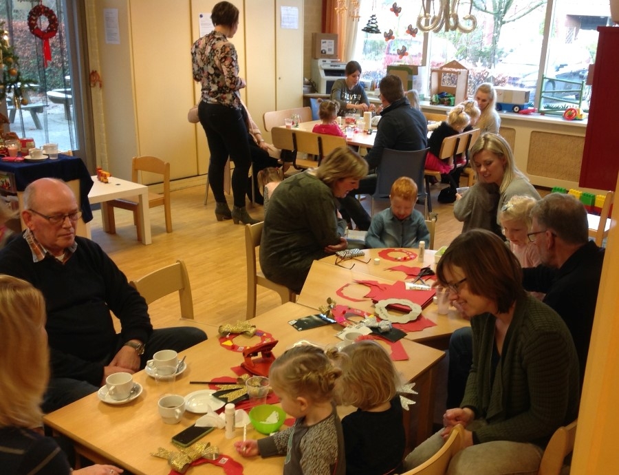 Deze week heeft de peuterzaal een gezellig Kerstfeest gevierd met de peuters,ouders of grootouders. Er zijn hele leuke kerstversieringen geknutseld en natuurlijk waren er lekkere traktaties met koffie,thee en frisdrank.Heel speciaal was, dit jaar voor het eerst, de afsluiting van de ochtend met medewerking van Amuzant bij het zingen van bekende kerstliedjes. Marijke,Thera,Marianne,Jacques,Renate,Wies en Ellis hebben meegespeeld met klarinetten,trombones en fagot.