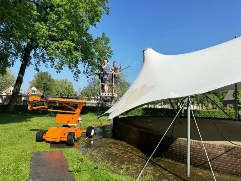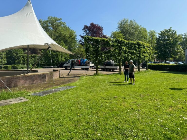 J.A.C ’94 is er maar weer druk mee: De jaarlijkse schoonmaakbeurt van de Hengeveldse Evenementen Tent. Het ziet er allemaal weer spik en span uit. Klaar voor de zomer, aldus Lars Aarnink van stichting ‘t JAC’94.