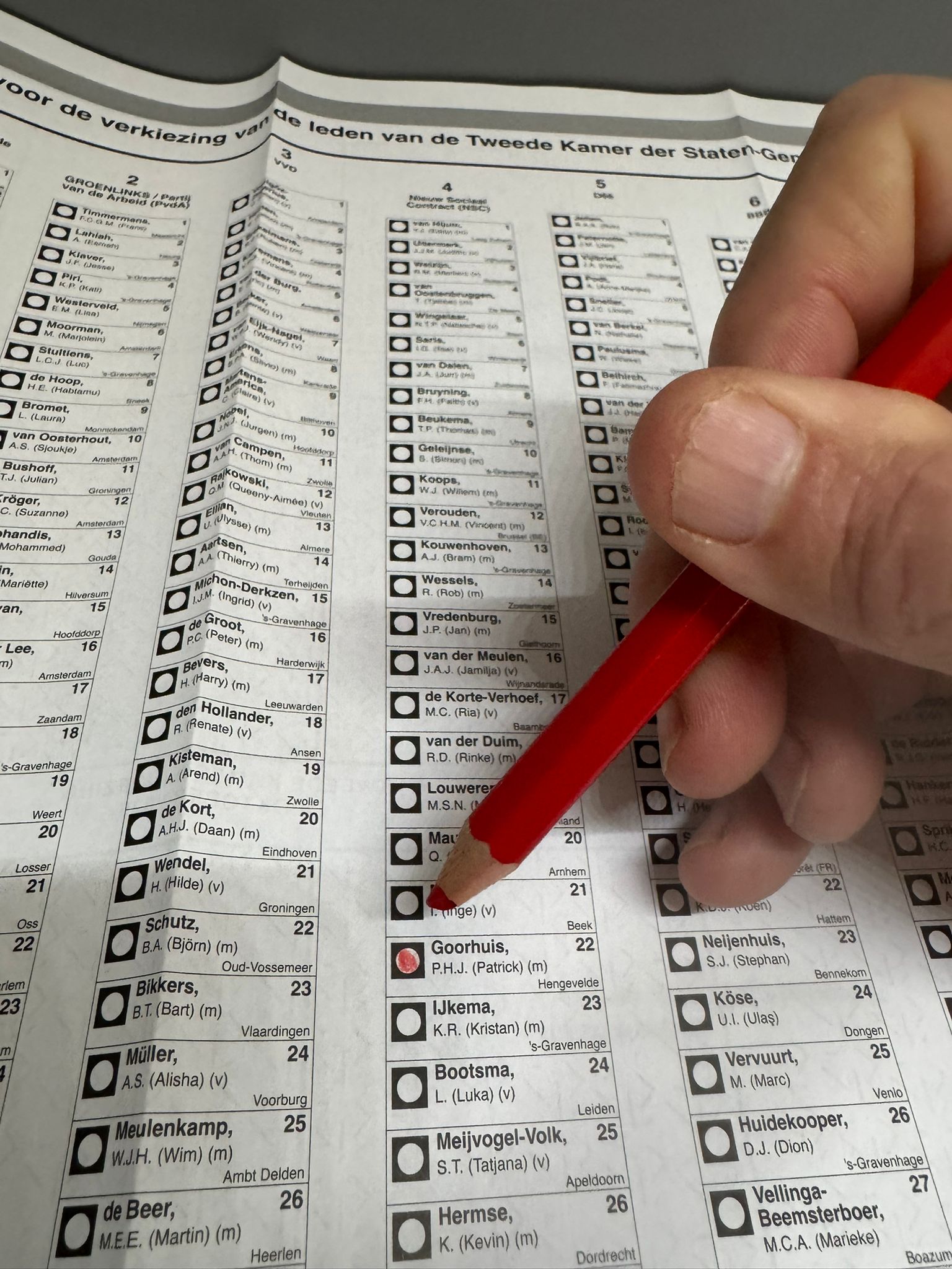 PVV op gelijke hoogte met D66 beide 26 zetels, verschil paar duizend stemmen