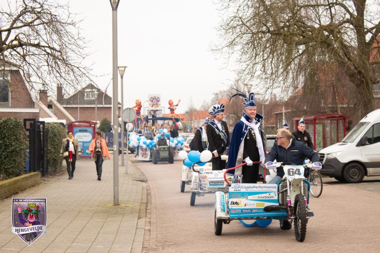 Zaterdag was het weer een prachtige carnavalsdag! Met een wagen en meerdere bussen vertrokken we richting Goor, waar we samen met de wagens van Bentelo en Goor in een feestelijke stoet naar het gemeentehuis trokken.