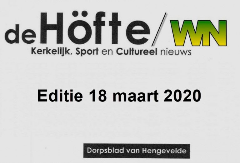 Vandaag de vijfde editie van de digitale Höfte! Uiteraard wederom het nieuws uit de Geloofsgemeenschap Hengevelde en de Splinters. Maar ook hier zal het corona nieuws niet ontbreken. Het sociale leven is totaal ontwricht, het zijn historische tijden. Waar gaat dit eindigen? Alle evenementen, bijeenkomsten en sportieve activiteiten zijn geschrapt hetgeen ook gevolgen heeft voor de samenstelling van deze Höfte. We hebben in ieder geval ons best gedaan om er iets van te maken.