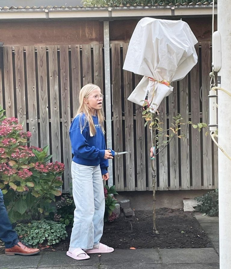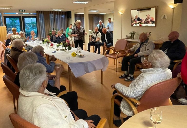 De Wensboomcomité nodige alle bewoners uit om naar de tuin te komen en daar onthulde Merle het appelboompje. Na de onthulling werden alle bewoners uitgenodigd voor een borreltje en een hapje in de Eikenborg. Samen met Marcel, Ronald, Marcel Wolterick (die nog even gauw de accordeon ophaalde) en de “kookdames” werd het een feestelijke afsluiting van een mooie dag.