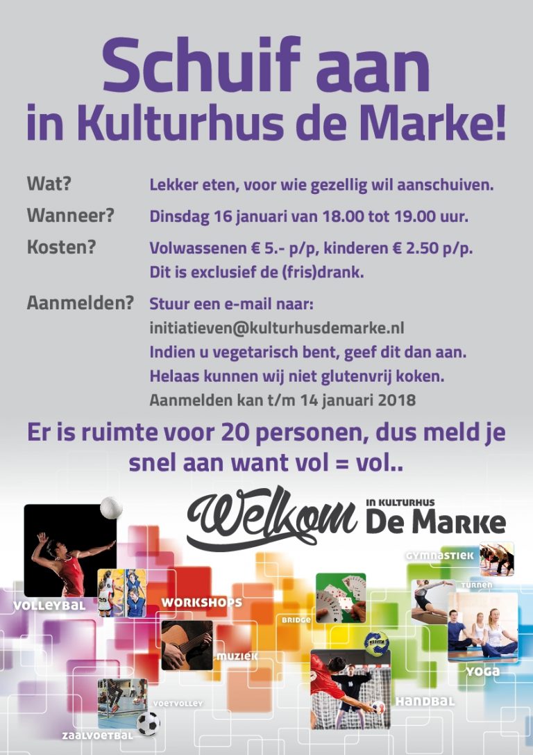 Dinsdag 16 januari: “Schuif aan in Kulturhus De Marke”