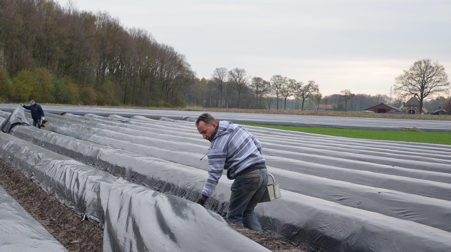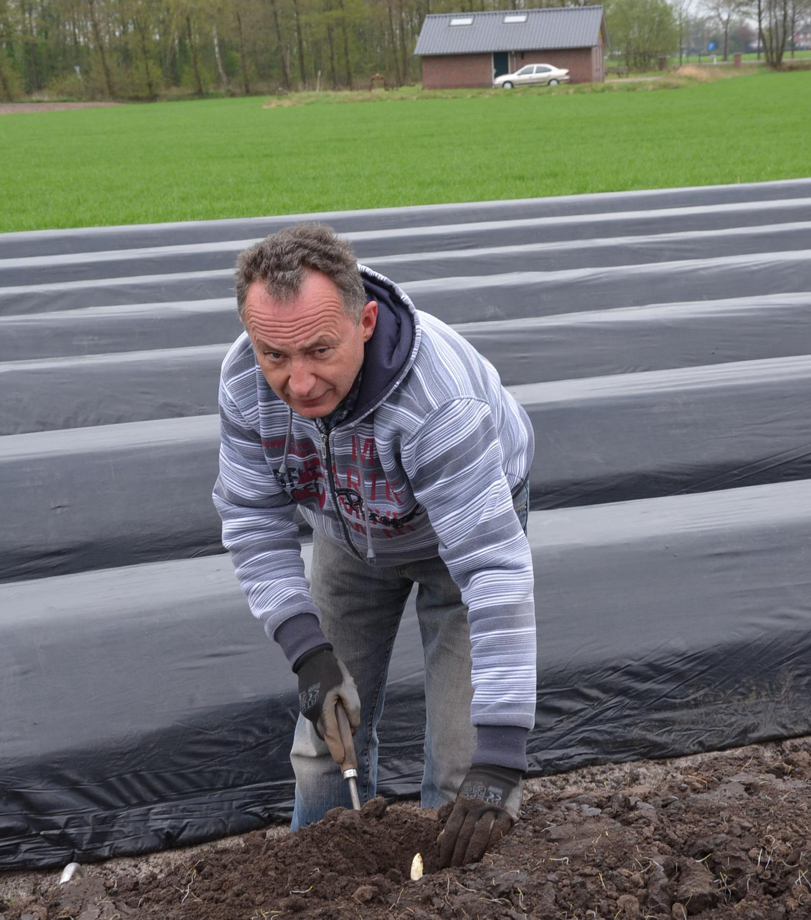 Het seizoen 2013 laat nog steeds op zich wachten, maar er is hoop. Gisteren waren slechts twee Poolse arbeiders aan het werk aan de Goorsestraat op het land van Rudy Buschers. “Immer nog zu kalt”was de uitleg in gebrekkig Duits. Spaarzaam werd hier en daar een stengel van het witte goud gevonden onder het zwarte landbouwplastic. Rudy Buschers:” We hebben de eerste asperges gestoken, woensdag gaan we open in Bentelo, donderdag in Hengevelde. Ik heb de werknemers op kilometerloon in plaats van kilogram haha! In de ruim 30 jaar dat we al asperges telen, zijn we nog nooit zo laat begonnen. De natuur kun je niet dwingen, dus geduld is ook hier een schone zaak”.