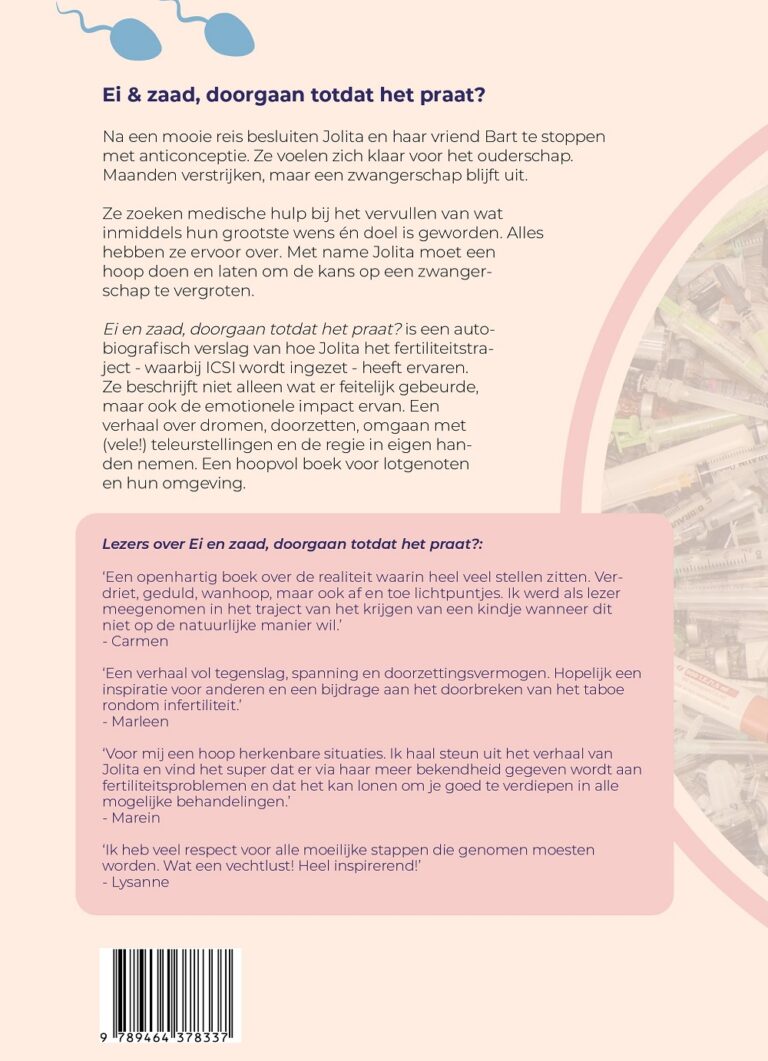 “Sinds 29 maart ligt mijn boek bij de Bazar van Jon in de winkel. Ei & zaad, doorgaan totdat het praat? Hij tipte mij dat u er misschien wat meer media aandacht aan zou kunnen geven. Het boek heb ik zelf geschreven en is een biografische boek over de weg die wij moesten bewandelen naar deze zwangerschap. Zelf ben ik woonachtig in Beckum”.