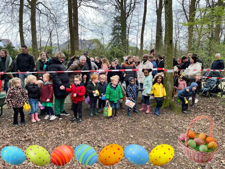 Onder begeleiding van ouders, opa’s, oma’s en andere belangstellenden mogen de kinderen op zoek naar kleurrijke eieren die zorgvuldig verstopt zijn in het bos. En wie weet… misschien vinden ze wel een van de gouden eieren die extra verrassingen met zich meebrengen!