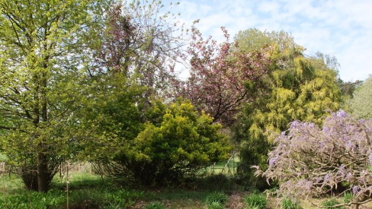 · (peren) fruitbomen, paarse listeria en mooie seringen