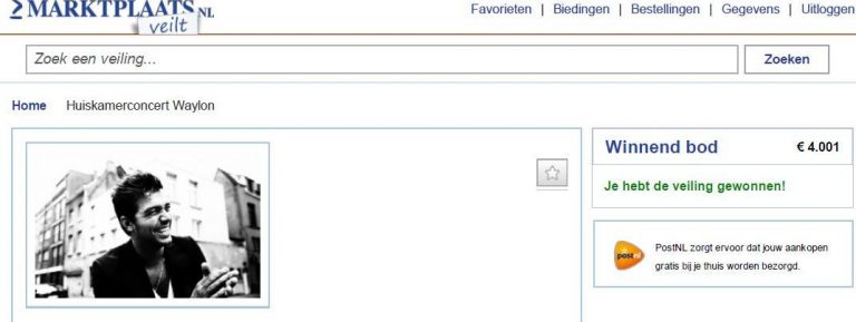 Iedere avond weer voor die televisie. Saai man! De winter is al begonnen, dus tot laat op een terrasje rondhangen zit er helaas ook niet meer in. What to do, what to do? Nou, wellicht is dit een leuk alternatief. Wat dacht je van een huiskamerconcert van niemand minder dan Neerlandsch eigen WAYLON! Ik bied mee voor Serious Request en maybe he’ll have his wicked way with you, dachten Gerjan en Erna Wegereef. Het hoogste bod was 4000 euro en daar werd vervolgens door zoon Dennis met 1 euro overheen geboden. Al een datum in beeld Gerjan wanneer de band komt?