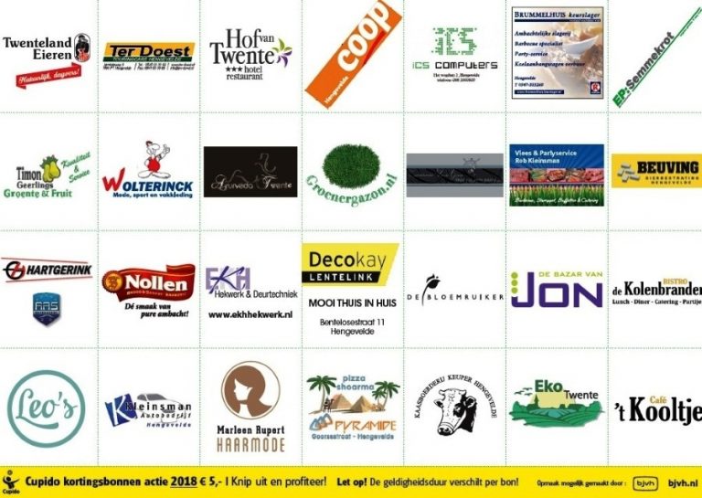 Volleybalvereniging Cupido komt in de week van 23 tot en met 30 april weer bij u aan de deur met de kortingsflyer. In samenwerking met maar liefst 28 ondernemers zijn er weer leuke, nieuwe kortingsacties bedacht. Enkele voorbeelden zijn; korting op een pak koffie bij Coop, gratis dessert bij de Kolenbrander, korting op eieren, twee gratis schnitzels bij de slager en een lekkere sorbet voor maar € 2,00. U betaalt voor de flyer slechts € 5,00 en u krijgt 28x KORTING bij bedrijven in Hengevelde. U steunt daarmee onze vereniging en krijgt er veel korting voor terug! Een mooie deal! Wij hopen natuurlijk op een goede verkoop, zodat wij als vereniging leuke acties kunnen blijven organiseren voor alle leden en de contributie laag kunnen houden.