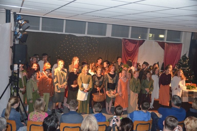 In verband met de grote belangstelling is de musical vanavond twee keer opgevoerd. Het ontroerende verfhaal over het meisje met de zwavelstokjes. Het was voor iedereen duidelijk dat de leerlingen van groep 7 goed geoefend hadden en er kwam dan ook een luid applaus uit de zaal na het daverende optreden!