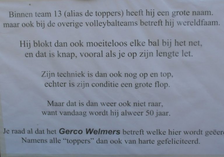 Een spektakel van jewelste daar aan Het Huneveld; geen plek is onbenut in de voortuin van de familie Welmers. De vader des huizes is vandaag 50 jaar geworden en dat is te zien! Vrijdag aanstaande is het feest gepland bij de Gebrande Waateren waar zo rond de 130 genodigden worden verwacht. Is het nu kamaraden of kameraden...?