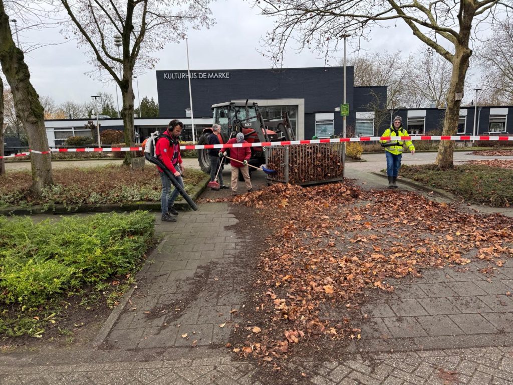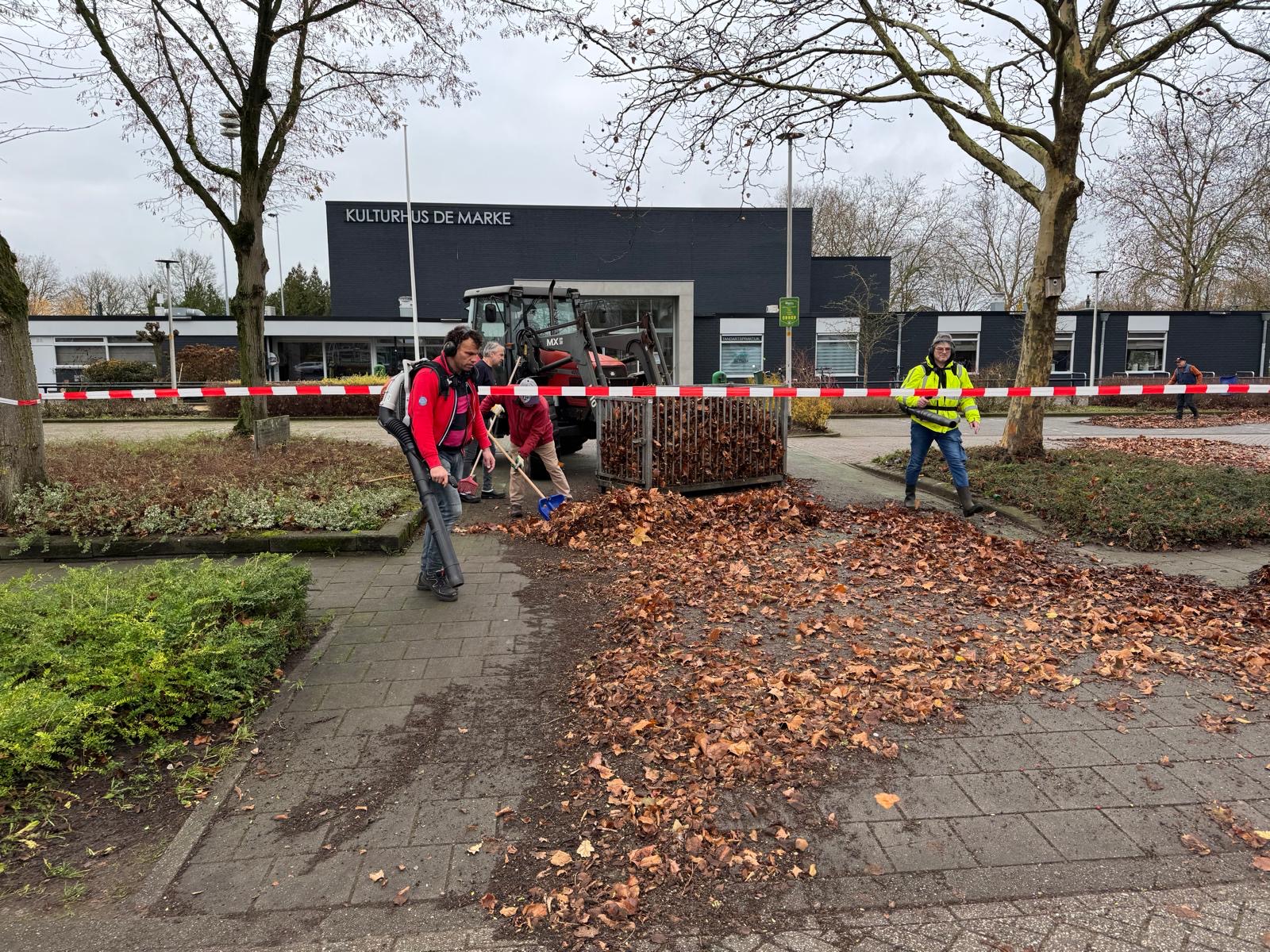 Geslaagde Bladruimactie rond Kulturhus de Marke – Vrijwilligers zetten de schouders eronder