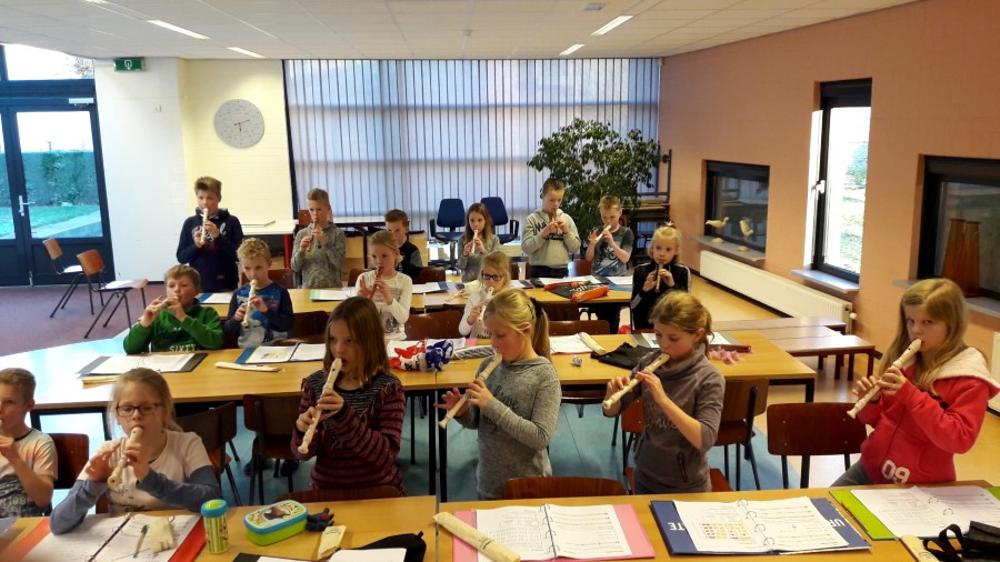 Deze week was de achtste les volgens leerlinge Caresse Stam. Zij is de lessen gaan volgen omdat ze van muziek houdt . Juffrouw Ria (Degenkamp) is niet streng, maar heel aardig. Vandaag hebben de 17 aanwezige kinderen de Sinterklaasles.