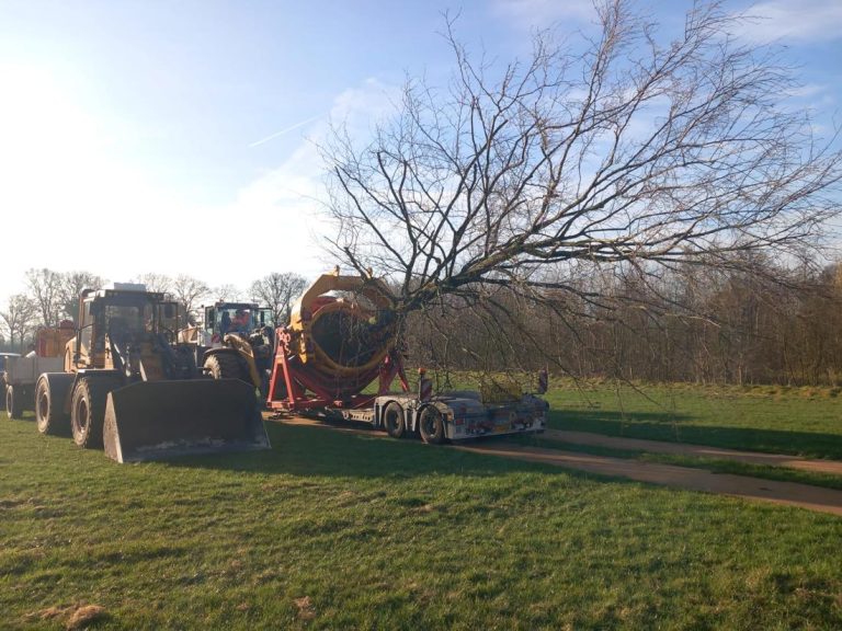 Toen hoorde ik dat Geurs zo’n boom kon verplaatsen, dus hebben we daarvoor gekozen. De afgelopen twee winters waren te nat, maar nu hadden we een paar mooie droge weken.