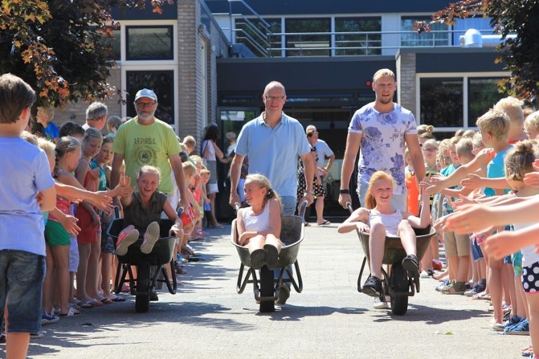 Het is al jaren een gebruik op de Petrusschool; Onder toeziend oog en luid applaus van leerlingen, ouders en grootouders worden de leerlingen van groep 8 per kruiwagen de school uitgedragen. Het leken wel filmsterren! Vele ouders en andere belangstellenden stonden aan het eind van de lange rij kinderen te fotograferen en te filmen. Namens de redactie allen succes volgend schooljaar!