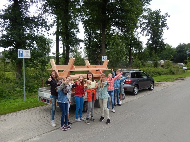 Groep 8 Petrusschool verrast bewoners Losserhof opnieuw met twee picknicktafels
