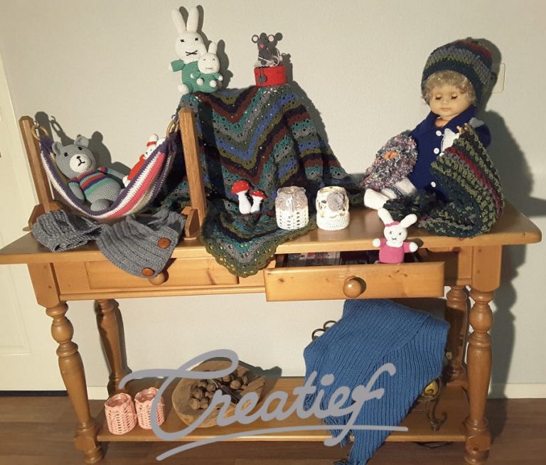 Daarbij moet je denken aan artikelen als mutsen en sjaals natuurlijk, maar ook gehaakte dekens, poppenkleren, poncho’s en kaarten.