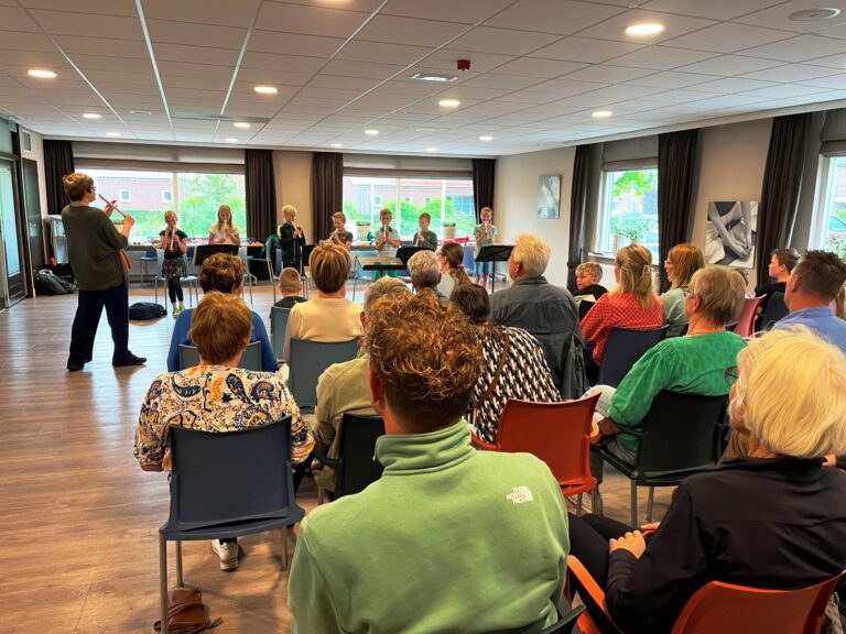 Afgelopen week hebben 7 leerlingen een spetterend optreden gegeven als afsluiting van hun Kunst=Tof leertraject. Onder enthousiaste leiding van muziekdocent Ria Degenkamp hebben ze in de Marke een groot publiek vermaakt met allerlei instrumenten. De blokfluit, trompet, trombone, dwarsfluit, diverse percussie en zang is hierbij langsgekomen. De aanwezige ouders, opa’s, oma’s, broertjes en zusjes waren onder de indruk. En stiekem waren er een aantal ook wel een beetje jaloers omdat ze zelf ook wel graag een instrument zouden willen kunnen spelen.