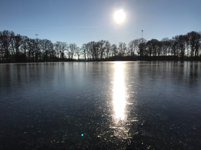 Er staat weer water te wachten om omgetoverd te worden tot ijsvloer daar aan de Gorsveldweg even buiten Hengevelde. “De ijsmeesters kunnen niet wachten! De reden dat er nu al water op staat is, dan kan de grond verzadigd raken met water zodat als het begint te vriezen het water niet direct weer wegzakt in de bodem en daardoor het niveau te laag wordt. Dat is uiteraard niet bevorderlijk voor een goede ijsgroei. Tevens kan het blad er nu mooi vanaf drijven, in het geval dat als er vorst komt ,het blad aan de buitenkant ligt en niet midden op de baan. Dan krijg je dus ijs met blad. Ook niet goed dus. Nu nog hopen op beter weer dan afgelopen seizoen, waar we helemaal niet open zijn geweest! De kas is leeg. Wordt weer een keer tijd voor goed jaar” aldus een medewerker.