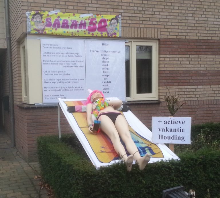 Hilde Bergkamp ziet Sarah. De tennisliefhebster kreeg ter gelegenheid van dit heugelijke feit leuke borden in haar tuin aan het Huneveld. Ook namens de redactie van harte proficiat!
