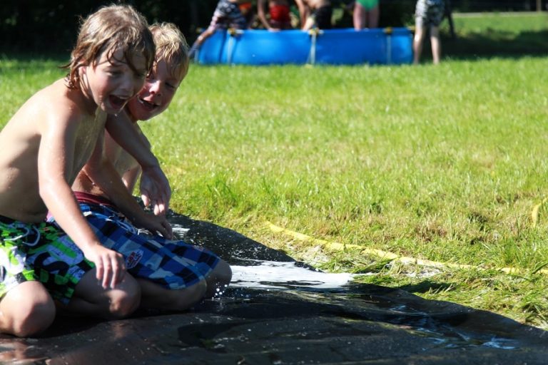 Het was een scala aan activiteiten vandaag, allen gebaseerd op temperaturen van boven de dertig graden’. Kussen slaan boven een zwembad, de buikschuifbaan werd weer voor de dag gehaald en vele watersproeiers sierden het terrein aan de Goorsestraat. Karen Bornebroek namens de organisatie:” De kinderen hebben zich super vermaakt. Ze hadden de Clash of clans estafette met waterbarrières, het verkleden bij Moviestar planet, het Angry Birds spel waarbij ze met in water gedrenkte knuffels stellages moeten omgooien en natuurlijk de antieke waterspelen.... De buikschuifbaan en het spel waarbij je elkaar van een boomstam af moest drukken boven een bad water waren ook een groot succes! De afsluiter was natuurlijk ook super, de afsluiter met de voorstellingen bij de hutten!”