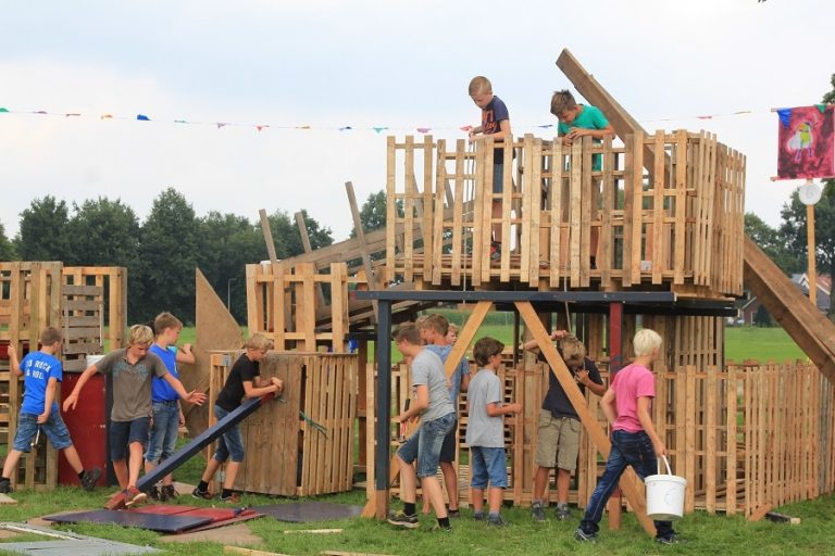 De eerste dag zit er weer op voor de kinderen van groep 5 tot en met 8. Het aantal van 176 kinderen en 41 begeleiders is ongeveer hetzelfde dan in afgelopen jaar, het grote verschil zat hem bij de EHBO; door de vele wespensteken was het alle hens aan dek voor de vrijwilligers van de eerste hulp. Verder hadden de pleister plakkers het eveneens druk met de lichte verwondingen. Een smetje op het geheel was misschien wel de opgetrommelde ambulance; een begeleidster heeft een pallet op haar hoofd gekregen, naar verluidt is het slachtoffer al weer huiswaarts gekeerd. Ze zal echter niet in staat zijn om de komende dagen nog op houtdorp te verschijnen. Was er ook nog goed nieuws? Zeker! “We hebben al veel gedaan gisteren en nu met zijn allenop naar morgen! Het weer was echt top dus we hebben er weer zin in. We hebben nog wel stoffen en kleden nodig!”, aldus begeleidster en fotograaf Inge Workel.