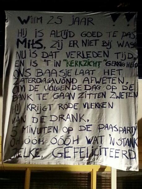 Hylke Kiezenbrink is vandaag 25 jaar geworden. De timmerman, woonachtig in Villa Kerkzicht aan de Goorsestraat, kreeg van zijn vrienden een mooi spanddoek die aan zijn balkon hangt. Ook namens de redactie van harte proficiat!