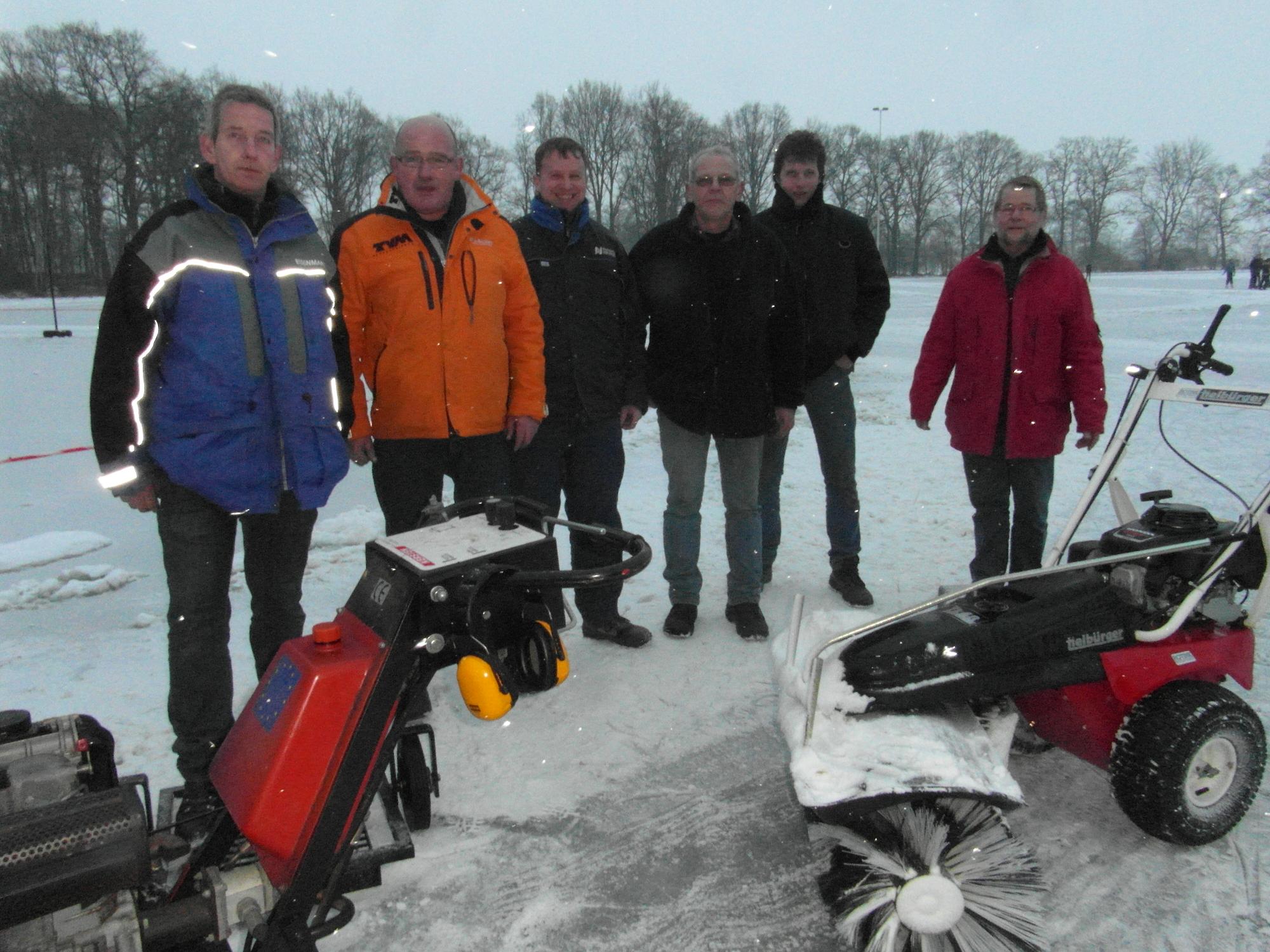 De vrijwilligers van de Hengeveldse ijsbaan kunnen terugkijken op een prachtige week. Vorige week zondag opende de baan aan de Gorsveldweg haar deuren en met uitzondering van de maandag konden ze een week ijsliefhebbers ontvangen. Bestuurslid Frans Broshuis hierover: "Het is een prachtige week geweest. Gemiddeld hebben we zo'n 800 bezoekers per dag gehad in alle leeftijden, erg mooi!" De Hengeveldse baan was een van de weinigen die lang open is geweest, dit doordat er water op de baan werd gespoten en de laag sneeuw om werd gezet in ijs. "Zonder de vele vrijwilligers, die hierboven niet allemaal op de foto staan, was dit nooit gelukt." Misschien kan de baan binnenkort nog een keer open gaan. "Februari is vaak een erg koude maand, dus we hopen op nog een schaatsperiode", besluit Broshuis hoopvol.
