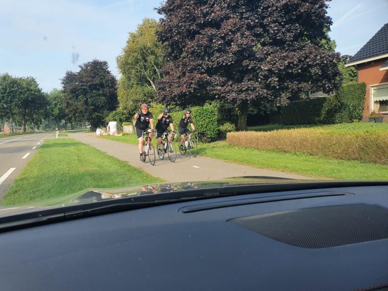 Het weer was prachtig en we hebben geen lekke band gehad. Ondanks dat wij met zijn drieën een keer door glas reden dat op een fietspad lag. Het moest dus zo zijn.”