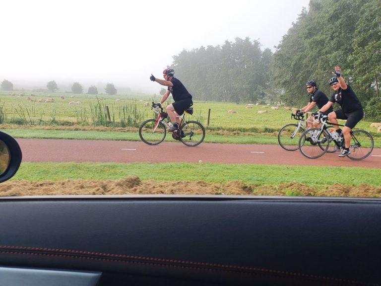 ”‘s Morgens hebben wij om half zeven met zijn allen bij Gerco ontbeten om vervolgens richting Amersfoort te rijden. Daar was de start van meer dan honderd teams en eigenlijk ook de finish. Maar wij hadden besloten dat het mooier was om richting Goor te fietsen.