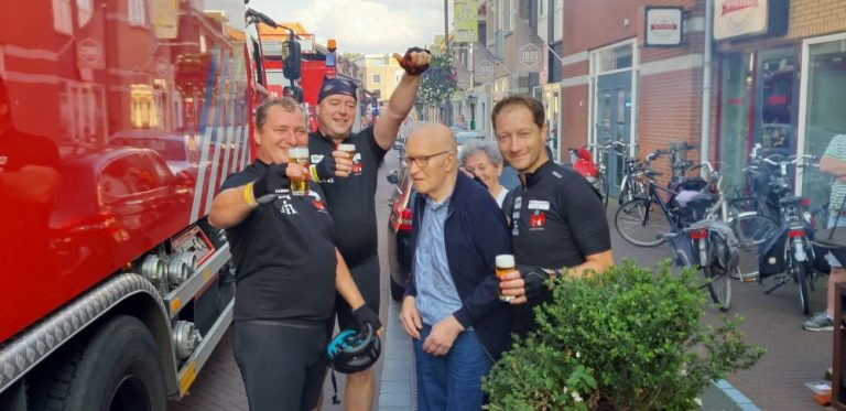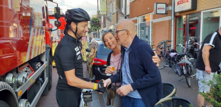“Toen wij vervolgen over de col du Markelo kwamen, stond daar een brandweerauto. Iets verderop nog een. De brandweer had besloten ons binnen te halen daar Gerco bij de brandweer zit. Dit was een meer dan aangename verrassing! Vlak voor de eindstreep gingen zelfs de sirenes aan.