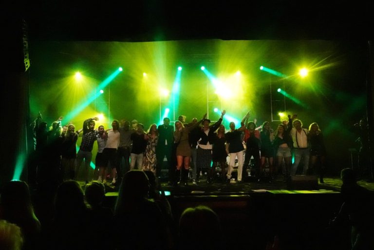 De Hengeveldse revue in het Kulturhus de Marke bracht gisterenavond een aaneenschakeling van humor, zang en dans met een lokale tint. Onder leiding van dorpsgenoten die dorpsgenoten op de hak namen, barstte de zaal met 500 aanwezigen meerdere keren in lachen uit. De revue gaf een luchtige en herkenbare kijk op het dagelijks leven in Hengevelde, waarbij men niet bang was om gevoelige onderwerpen op een grappige manier aan te pakken. De zang- en dansnummers waren verfrissend en zorgden voor een levendige sfeer. De revue bood precies wat je hoopt van zo’n avond: een viering van dorpscultuur, vol plezier en verbinding, maar hier en daar ook met een *kritische noot.